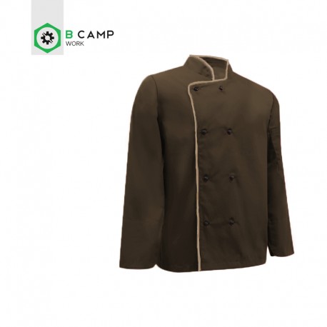 Jaleca unisexo com vivo, botões pretos de segurança, bolso na manga com dois compartimentos