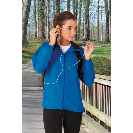Casaco senhora em sarja poliéster-algodão de manga curta.