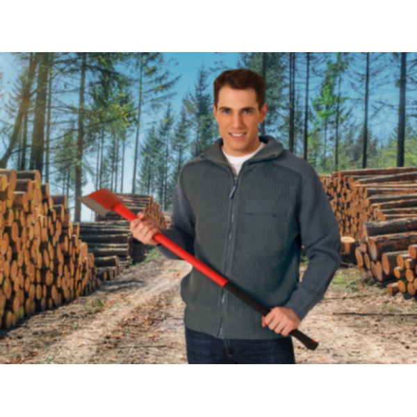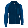 Blusão de homem com fecho de correr de 8 mm em contraste, capuz com costuras de ponto duplo e cordão, elástico no fundo, punhos com elástico e presilha de ajuste, dois bolsos exteriores com fecho de correr oculto