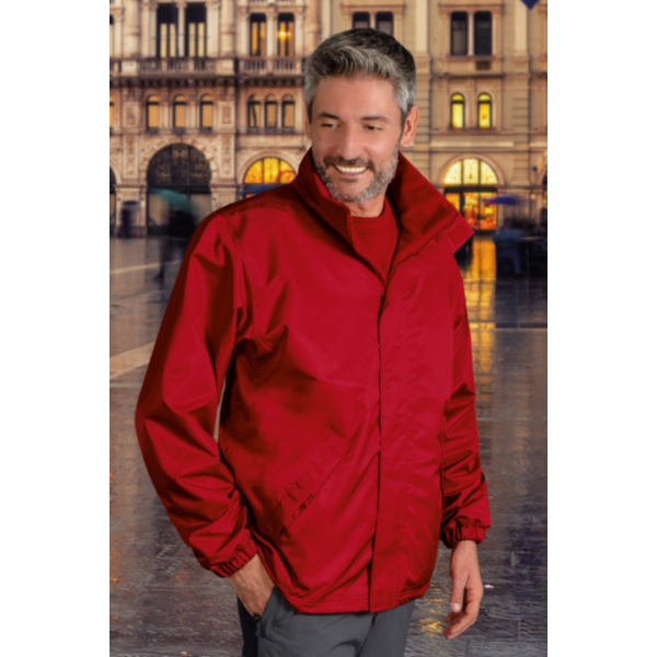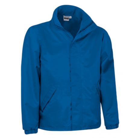 Exterior: 70% poliéster - 30% PVC com tratamento impermeavél , 200 grs // m2, interior: 100% poliéster anti-pilling polar, 200 grs / m2. Gola alta, fecho frontal completo com aba, 2 bolsos laterais com aba. Punhos elásticos. Capuz com cordão ajustável oculto na gola. Costuras termo-seladas . Fecho interno traseiro (fácil bordado / impressão). 20 unidades por caixa, 1 unidade por pacote.