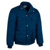Blusão poliéster revestido a PVC tipo aviador, sistemas de aperto com fecho e molas de pressão, 2 bolsos em baixo, 1 bolso no peito, 1 bolso na manga e gola com pêlo.