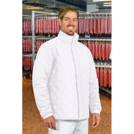 Blusão de ajuste ergonómico de homem, manga ajustada, fecho de correr SBS inteiro, em plástico com cursor em metal autolock, dois bolsos laterais com fecho de correr, um bolso multifuncional no peito com porta- identificação ocultável e paleta LOCK SYSTEM, faixas refletoras 3M nos ombros, elástico e ajuste nos punhos com velcro, capuz amovível e cintura de cordão elástica ajustável;