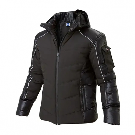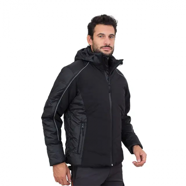 Parka triplo uso em Nylon revestido a PVC, sistemas de aperto com fecho e molas de pressão, Capuz Integrado na Gola, 2 bolsos em baixo, 2 bolsos no peito (1 para Telemovél), Interior desmontável com mangas amoviveis.