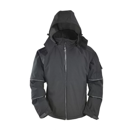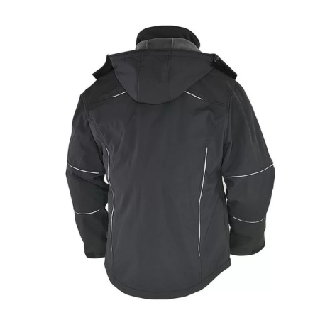 - O tecido softshell laminado de 3 camadas oferece um alto nível de resistência à água, boa respirabilidade e uma temperatura agradável;