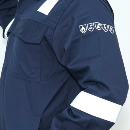 - Casaco ignífugo e antiestático com fitas refletoras;