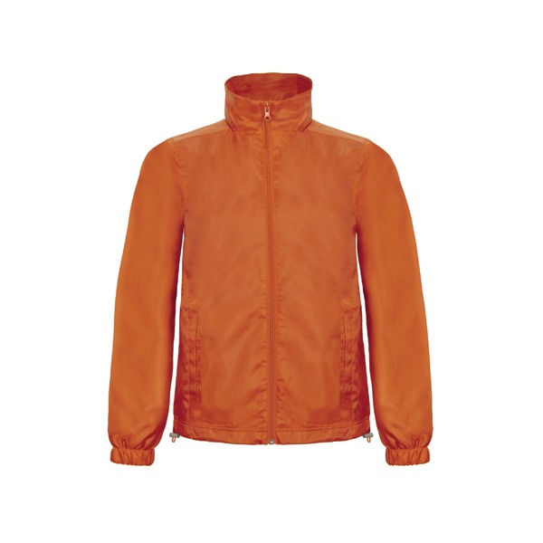 Blusão de ajuste ergonómico de homem, manga ajustada, fecho de correr SBS inteiro, em plástico com cursor em metal autolock, dois bolsos laterais com fecho de correr, um bolso multifuncional no peito com porta- identificação ocultável e paleta LOCK SYSTEM, faixas refletoras 3M nos ombros, elástico e ajuste nos punhos com velcro, capuz amovível e cintura de cordão elástica ajustável;
