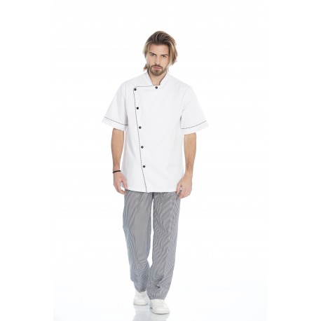 Jaleca Cozinheiro Manga Curta Branco e Preto