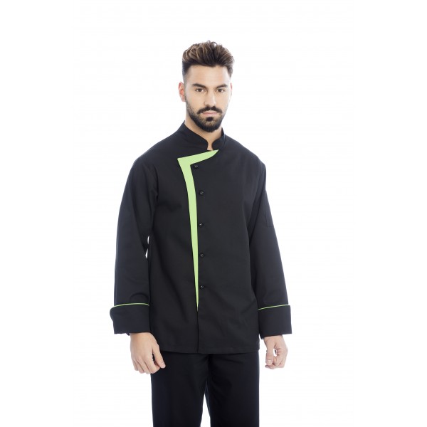 Jaleca cozinheiro em sarja poliéster-algodão.