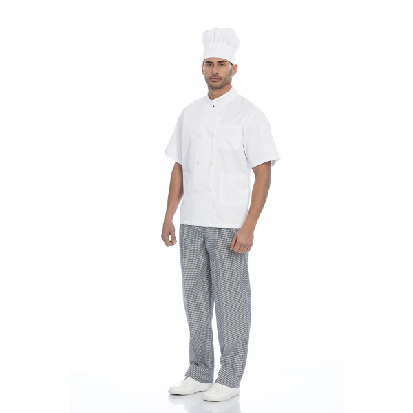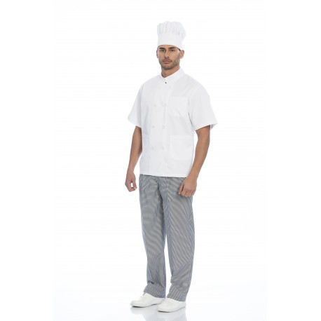 Jaleca cozinheiro em sarja poliéster-algodão de manga comprida.