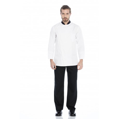 Jaleca cozinheiro em sarja poliéster-algodão com presilha apanha manga