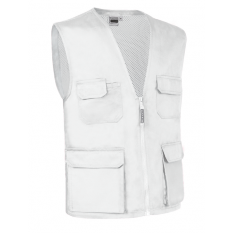 Colete poliéster/Algodão acolchoado, multibolsos, sistemas de aperto com fecho e molas de pressão, 2 bolsos duplos em baixo, 2 bolsos centrais e 2 bolsos no peito