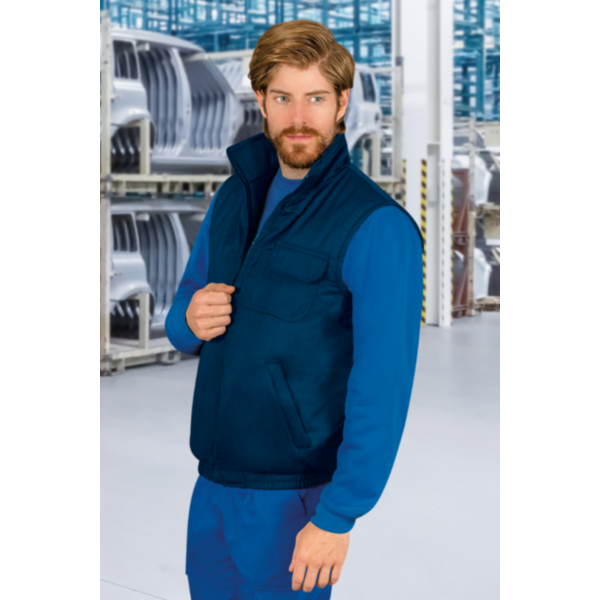 Colete acolchoado 100% PU rev. poliéster - 100% poliéster revestido a PU; - Forro interior e acolchoado de poliéster