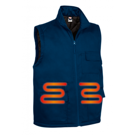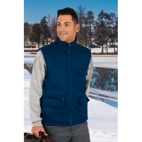 Colete poliéster/Algodão acolchoado, sistema de aperto com fecho, 2 bolsos em baixo e 1 bolso no peito para telemovel