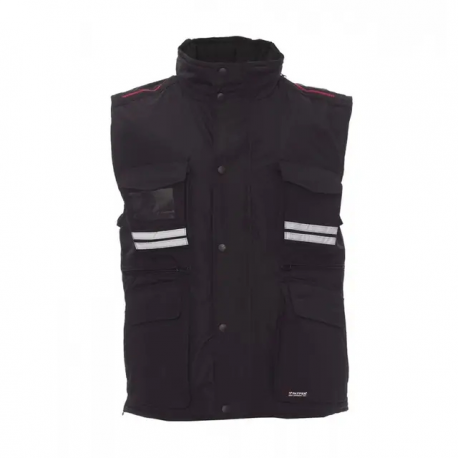 - Colete de homem, fecho de correr de 8 mm de plástico e com cursor de metal, com paleta e botões em plástico, capuz destacável e/ou oculto na gola, faixas refletoras cinzentas na frente e costas, respiradouro lateral com reforço e fecho de correr, nove bolsos exteriores, dois com LOCK SYSTEM, dois com fecho de correr e interior reforçado, um com porta- identificação reversível;