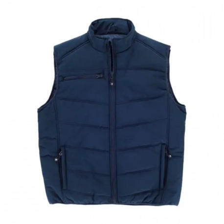 - Colete acolchoado. Gola alta com fecho de correr. Aba protetora interna virada na parte superior cobrindo o zíper. Dois bolsos laterais interiores com fecho de correr. Uma bolsa interna no peito com fecho de correr. Encadernação em viés elástico.