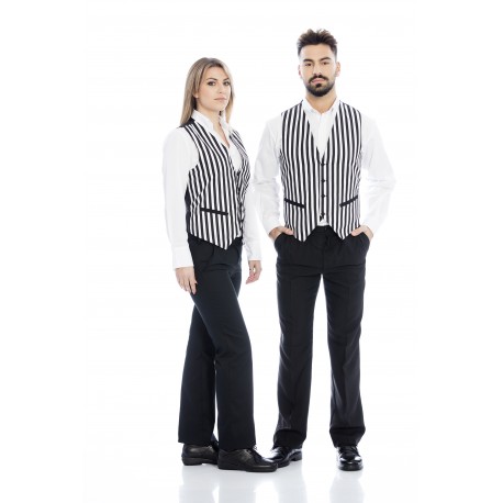 Colete homem em sarja estampada poliéster-algodão.