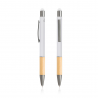 Esferográfica em alumínio reciclado, touch. Feita em alumínio reciclado de desperdício e em fim de vida útil, utilizando processos de rederretimento e aproveitamento e com um grip de bambu. Ao comprar esta esferográfica, está a ajudar a reduzir as libertações de carbono e a reduzir o lixo derivado da não reutilização. Com função touch para usar nos seus dispositivos.