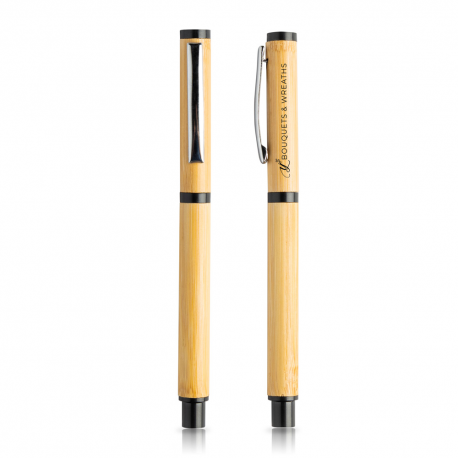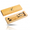 Conjunto de esferográfica e roller em bambu, estojo de oferta.