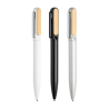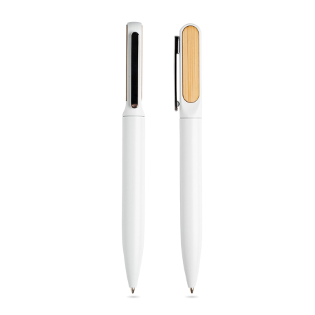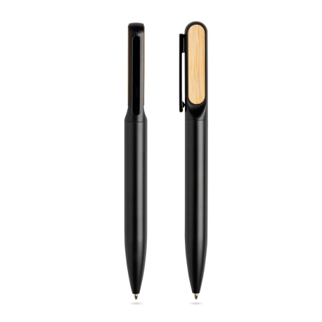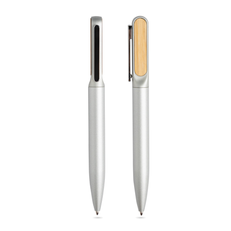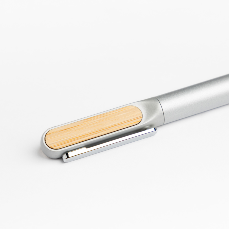 Esferográfica em metal com detalhes em bambu.