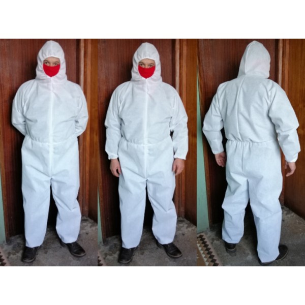Macacão em polipropileno revestido com filme microporoso respirável para proteção contra poeiras e proteção parcial contra líquidos