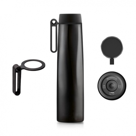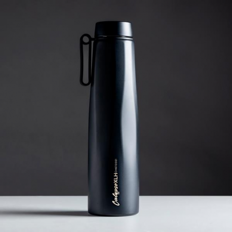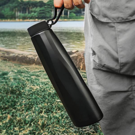 Design, Sustentabilidade e Usabilidade. Garrafa térmica 750ml em aço inoxidável reciclado com uma alça ergonómica que permite pegar-lhe rapidamente.