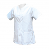 Jaleca modelo sem gola manga curta - 65% poliéster e 35% algodão;