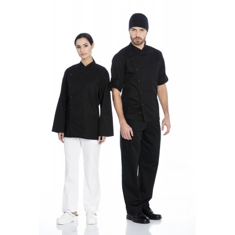 Jaleca cozinheiro em sarja poliéster-algodão com presilha apanha manga