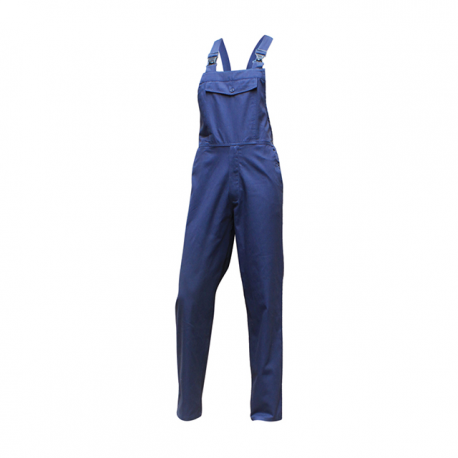 Jardineira standard - 100% algodão; - Gramagem: 270g/m2; - Elástico na cintura; - Suspensórios com fivelas ajustáveis; - Bolsos inferiores e superiores; - Bolso de metro;