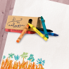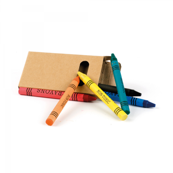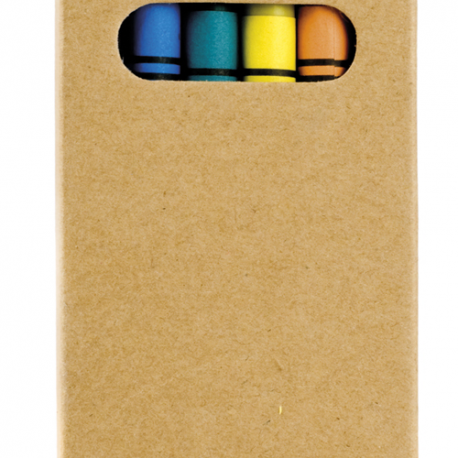 Caixa com 6 lápis de cera. Um conjunto de lápis de cera, com seis cores diferentes, para dar asas à sua imaginação. Numa caixa de cartão com janela e com boa área de gravação.