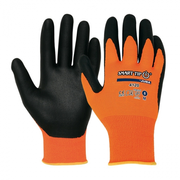 Composição: - Suporte em nylon revestido a nitrilo FOAM extra fino Características: - Suporte sem costuras; - Revestida na palma e ponta dos dedos; - Punho elástico; - Tecnologia “Smart Tip “ permite o uso de equipamentos com ecrã tátil sem remover as luvas; Recomendada para: - Logística; Indústria automóvel; Manejo de peças pequenas; Uso de qualquer dispositivo com ecrã tátil;