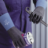 Neopreno sobre borracha natural de aderência áspera com interior flocado de algodão.