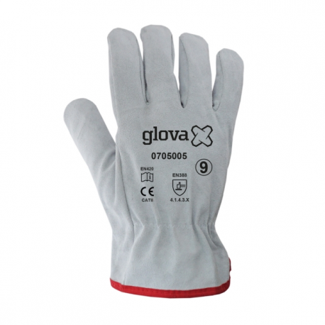 Luva em fibra Dyneema® mesclado com fibra de vidro e outras fibras sintéticas, revestido de látex rugoso.