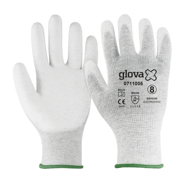 - Suporte em poliéster e fibra de carbono cinzento revestida a poliuretano branco;