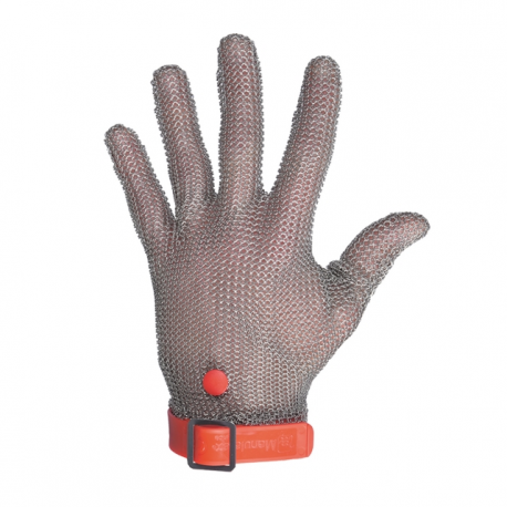 Composição Luva de malha metálica em aço inoxidável. Ambidestro