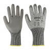 Composição: - Suporte em HPPE (polietileno de elevado desempenho) revestida a poliuretano Características: - Suporte sem costuras - Revestida na palma e ponta dos dedos - Punho elástico - Dorso arejado - Grande resistência ao corte e à abrasão Galga: -13 Recomendada para: - Cerâmica; Indústria metalúrgica; Indústria do vidro; Manipulação de materiais abrasivos e cortantes