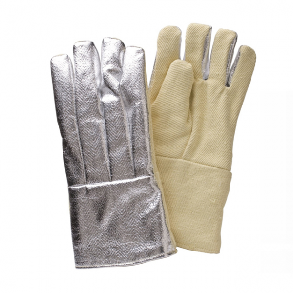 Composição: - Forro em pura lã e algodão revestida a aramida / aramida aluminizada Características: - Revestida na palma a aramida (600g/m²) - Revestida no dorso a aramida aluminizada (370g/m²) - Peças unidas com fio de kevlar - Grande resistência à abrasão e rasgões - Protege do calor intermitente até 500ºC Recomendada para: - Fundições; Indústria do metal; Pirotécnica; Reparação de fornos; Centrais de cimento