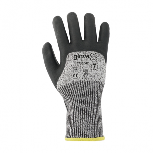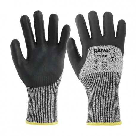 LUVA CORTE HPPE/FIBRA DE VIDRO/SPANDEX/NYLON REVEST. 3/4 PU/NITRILO FOAM