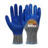 - Suporte em HPPE/ fibra de vidro / fibra de aço / spandex / poliéster cinzento e preto revestida a látex 3/4 azul com acabamento rugoso;
