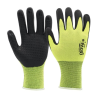 - Nylon e spandex amarelo revestida a nitrilo foam preto com pontos de nitrilo na palma;