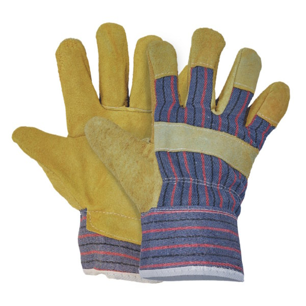 Luva em pele flor de bovino com costuras, com dorso e polegar em Nylon®/Elastano (Spandex).