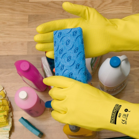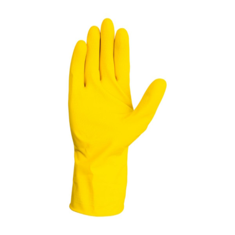 Composição Luva sem suporte de látex amarelo flocou.