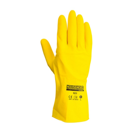 - Luva sem suporte de látex amarelo flocou.
