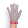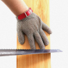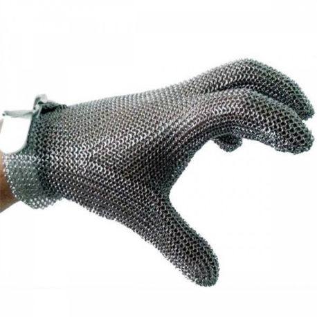 Luvas de malha de aço inoxidável, projetadas para proteger o utilizador contra lesões causadas por cortes e perfurações, especialmente ao usar facas ou ferramentas semelhantes.