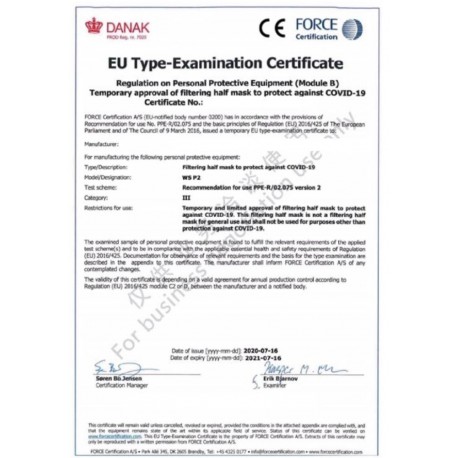 (EU) 2016/425 EN149:2001 + A1:2009 FFP2 Modifed