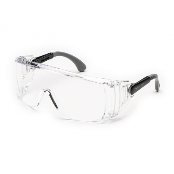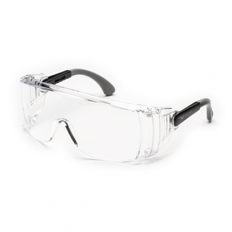 - Lentes em policarbonato com formato esférico; - Amplo campo de visão; - Design compacto permite que sejam usados com a maioria dos óculos graduados;