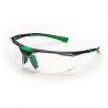 - Lentes em policarbonato; - Hastes com extremos suaves e moldáveis; - Proteção lateral incorporada
