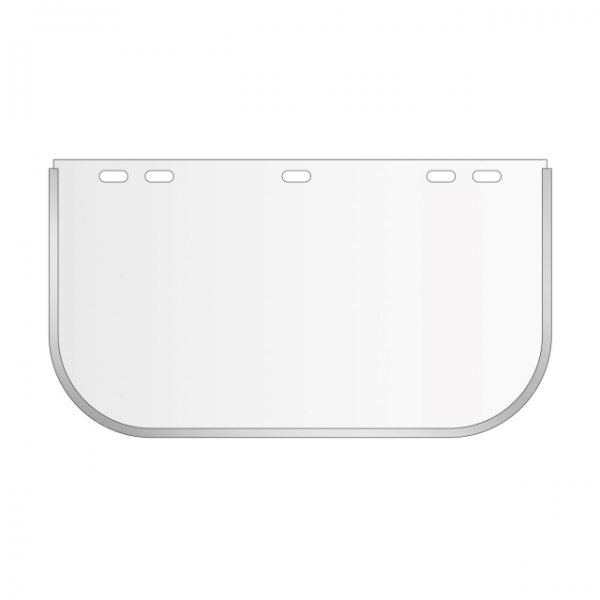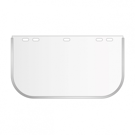 Ecrã facial em policarbonato incolor, com dimensões de 195x400mm.