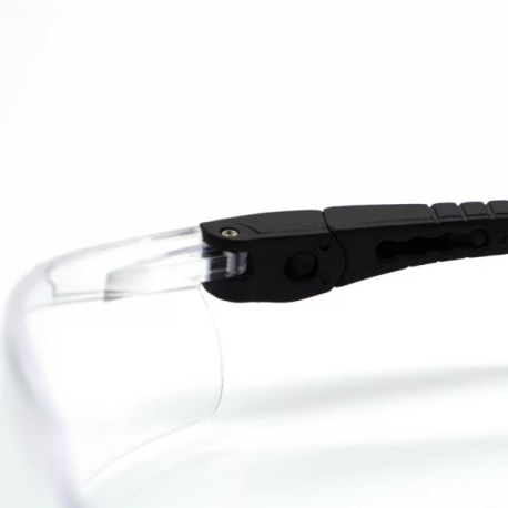 - Lentes em policarbonato com alta resistência a impactos e antiriscos;
