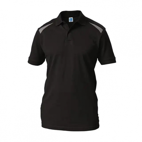 Pólo preto de homem em tecido antibacteriano de iões de prata na frente e malha cooldry nas costas.