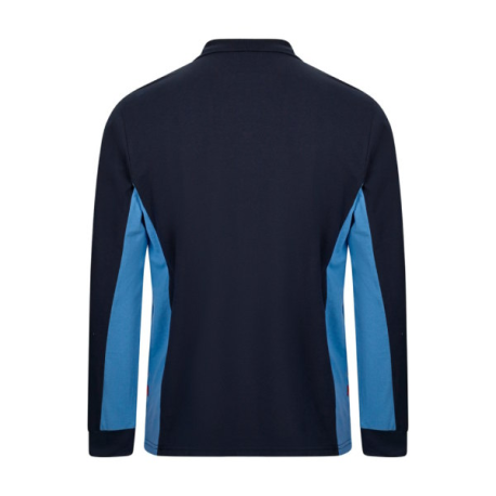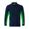 - Laterais, axilas, carcela, tapa costuras da gola e pespontos em cor contraste;